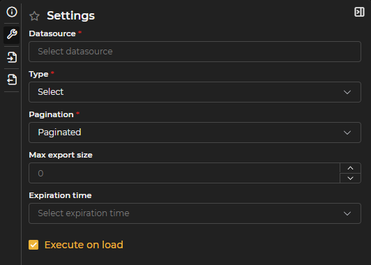 Execute on load: If this option is enabled, the query will automatically execute upon opening, applying the filters of input variables that have predefined values. If any mandatory variable lacks a default value, the query will not execute or display results until that value is completed.